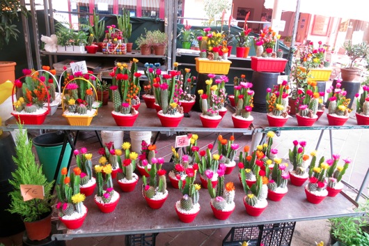 Flowers, plants, soaps, paintings, knick knacks, potpourri, wood carvings, flavored salt, flavored sugar, salt and pepper shakers, olives, olive oils, pestos, herbs, spices, pates, cured meats, cheeses, sausages, nougats, breads, marshmallows, seafoods, sea sponges, fresh produce, fresh fruits, dried fruits, peaches, peaches, peaches!