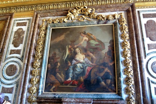 On the ceiling are 30 compositions painted by Lebrun, illustrating the glorious history of Louis XIV